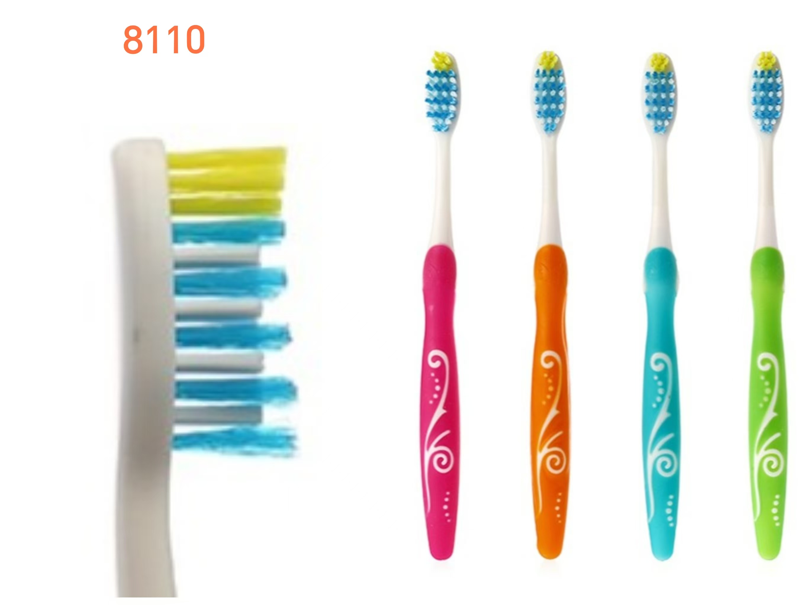 8110卷文草手柄双色软毛高档成人牙刷两支装